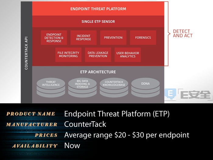 次要特点:CounterTack推出的ETP供给先辈的端点平安和动态防御。该平台正在整个企业范畴内集成多手艺检测、阐发和从动响应功能,以帮帮组织机构智能应对最的收集。
