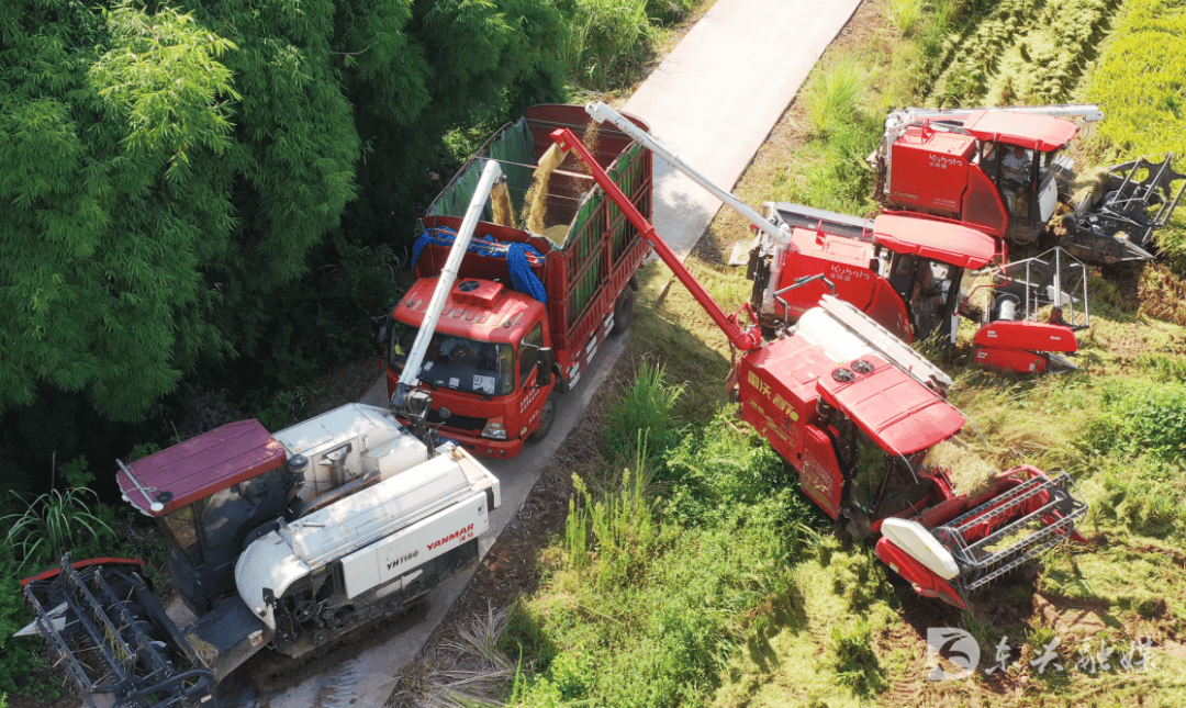 一曲以来,东兴区一直把高尺度农田扶植做为推进村落复兴、保障粮食平安的“硬核工程”,通过完美根本设备、提拔灌溉水操纵系数、削减化肥农药利用量等行动,实现了粮食减产取绿色成长的双赢。本年,东兴区全力推进2025年8万亩高尺度农田扶植,提拔2万亩,目前所有项目已全面开工,扶植正全速推进。本年九月,东兴区田家镇长江现代农业园区内,金黄的稻浪正在轻风中翻腾,空气中洋溢着清爽的稻喷鼻。农业手艺人员驾驶收割机正在稻浪中来回穿越,收割、脱粒、清选等工序趁热打铁,尽显丰收喜悦。“高尺度农田让之前的‘巴掌田’变得集中连片、地盘平整、配套完美,现正在耕种前提好了,效率大幅提拔。”宏丰农机专业合做社工做人员刘盈秀说,“现在全程可实现机械化收割,园区一千亩水稻总产量可达60万公斤,”